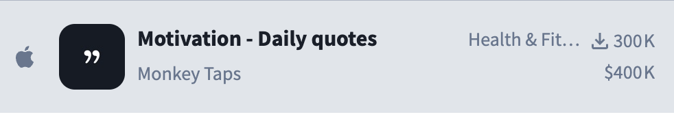 And not just in terms of engagement are consumers showing they value this form of content, we see these apps have lots of success by way of revenue as well. For example the Motivation App by Monkey Taps has an incredible 1.3million followers, ~300k monthly downloads, and ~$400k MRR.